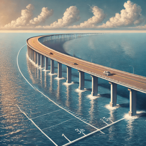 - Fotografías tomadas desde un punto bajo muestran cómo el puente parece «descender» hacia el horizonte en lugar de seguir una línea perfectamente recta.