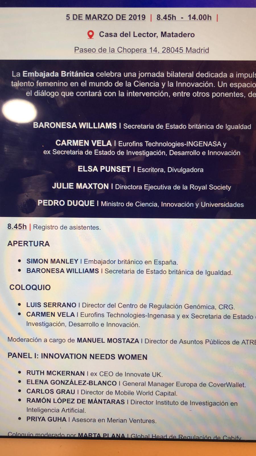 Ha sido un placer participar en "Women in Science and Innovation" organizado por la Embajada Británica en España @ukinspain, con magníficos ponentes y nuestra presidenta @MartPD como presentadora del acto, see you soon! #wis2019 #NiñasSinLímites pic.twitter.com/TJQLLR9Yjp