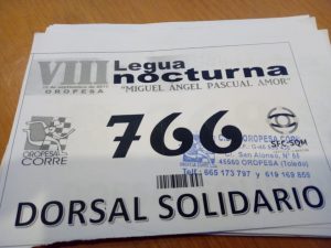 Toda esta labor culminó en una verdadera fiesta solidaria, en la carrera nocturna “VIII Legua Solidaria Miguel Ángel Pascual Amor”, en la que participaron desde niños y niñas de poco más de un año hasta adultos ya en la tercera edad. Imponente y brillante organización de las carreras en las distintas categorías, la preparación y cuidado de la organización para con los corredores participantes, e impresionante el ambiente solidario que se respiraba: hasta pocos minutos antes de comenzar la última carrera, la de los adultos, aún había quienes acudían a adquirir el “dorsal solidario”, cuyo beneficio económico se ha destinado íntegramente a la Asociación.