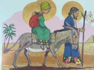 En la misa dominical, salpicada de cantos y bailes, el párroco presentó las pinturas en una de las iglesias en las que trabajamos. Hubo una ovación con gritos de júbilo. Las paredes desnudas tenían ahora una colección de ángeles, una Natividad y el Taller de José. En la nave habíamos dejado la Anunciación y la Huida a Egipto.