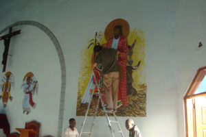 Le sugerí a Bishop Muheria la posibilidad de regresar a Kitui con el propósito de pintar algunos frescos, destreza que sólo había tenido ocasión de practicar en un hogar de acogida para los niños de la calle, en Nairobi.